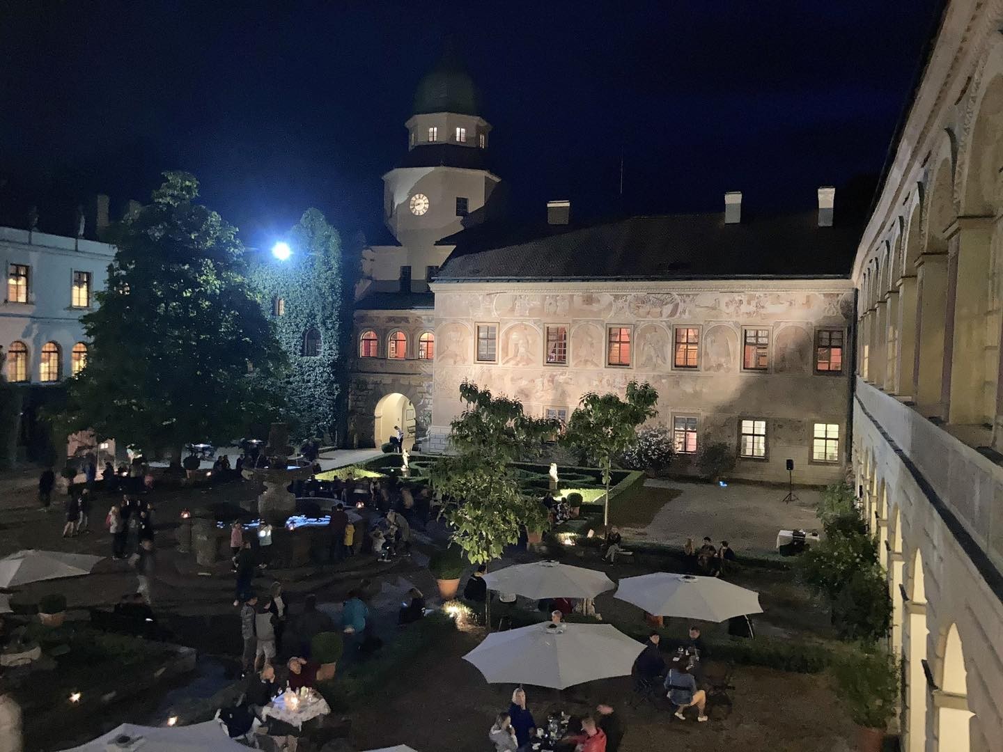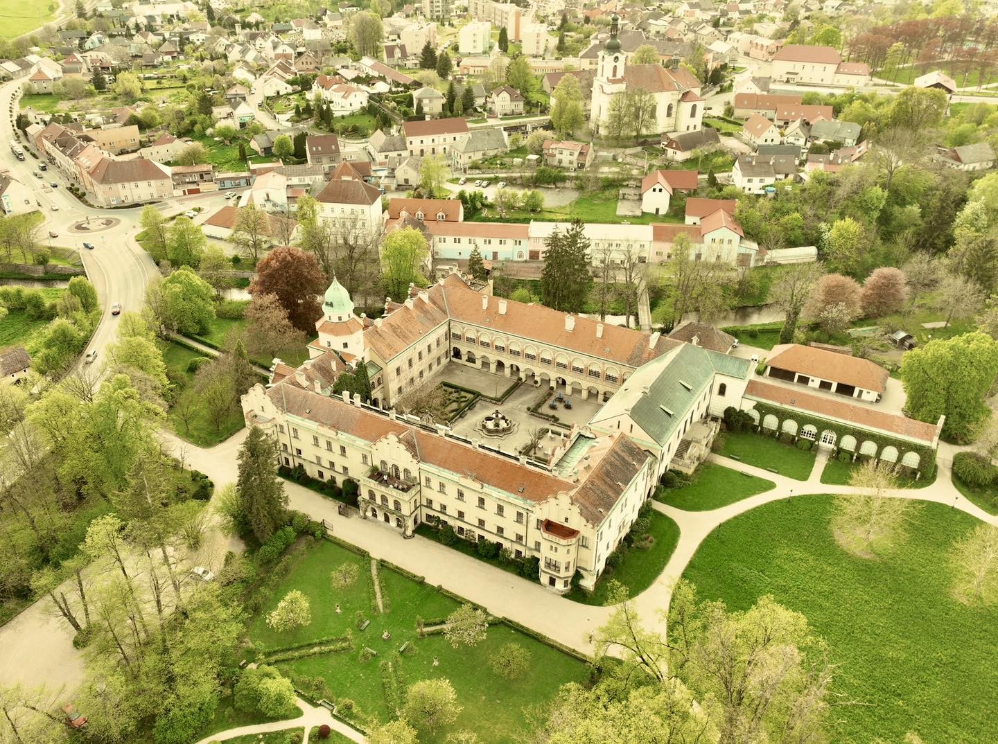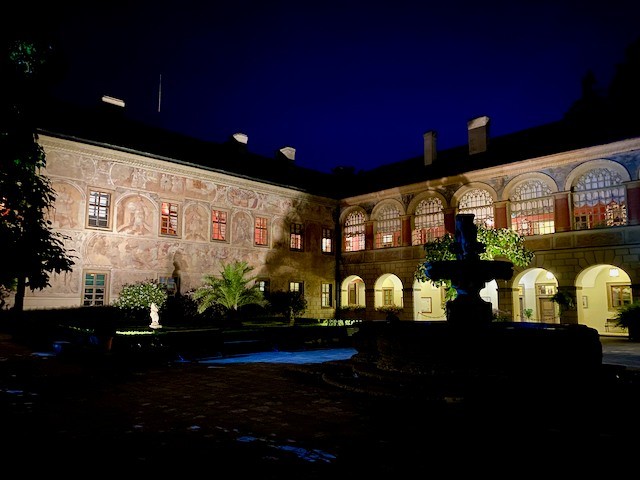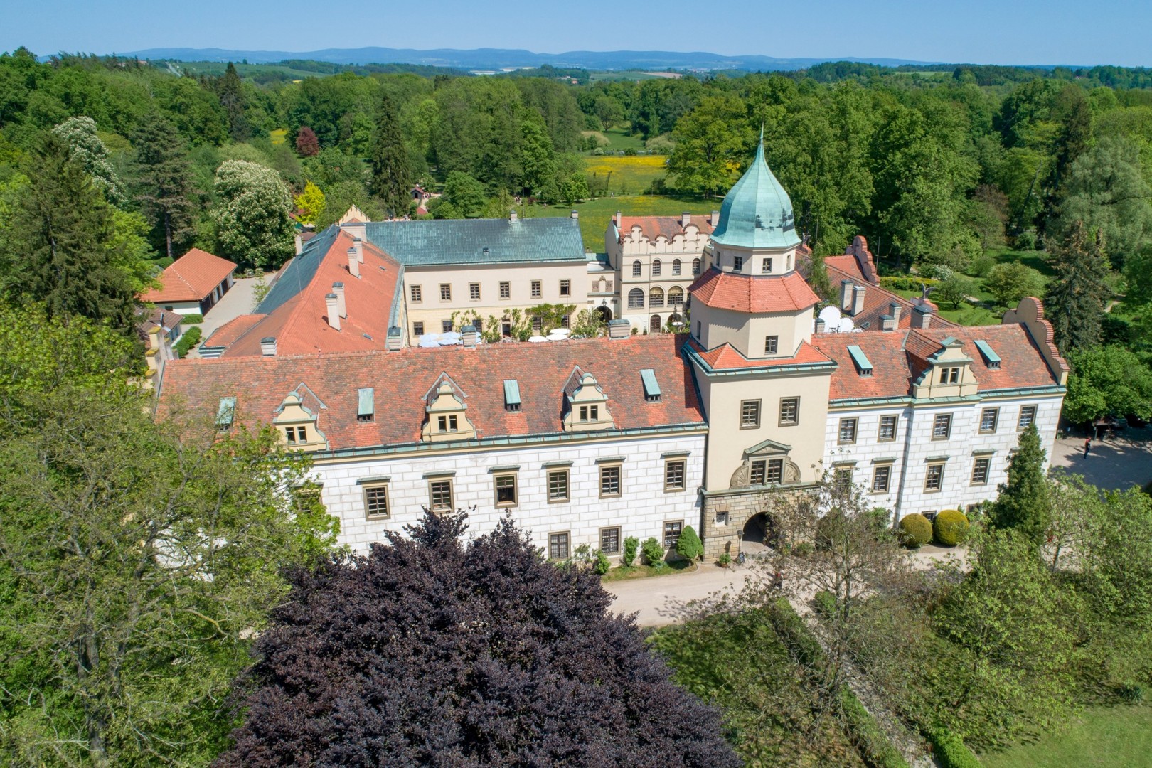 Kromě útulných interiérů můžete obdivovat Rytířský sál s renesančními kazetovými stropy, či krytou arkádovou chodbu. Zámek obklopuje celoročně přístupný anglický park, jehož součástí je vodní a růžová zahrada, obora s bílými daňky a Dynovského jeleny. Součástí parku je také zámecký zvěřinec, ve kterém si mohou děti i dospělí prohlédnout a nakrmit různé druhy domácích i exotických zvířat.